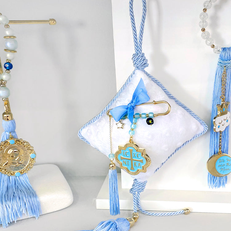 Διακοσμητικό κρεμαστό γούρι σιέλ με Παναγία