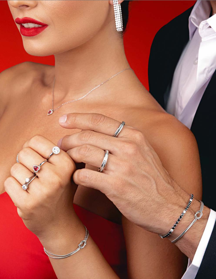 Γυναικείο Tennis βραχιόλι από ατσάλι με καρδιά και κόκκινα & λευκά ζιργκόν Luca Barra