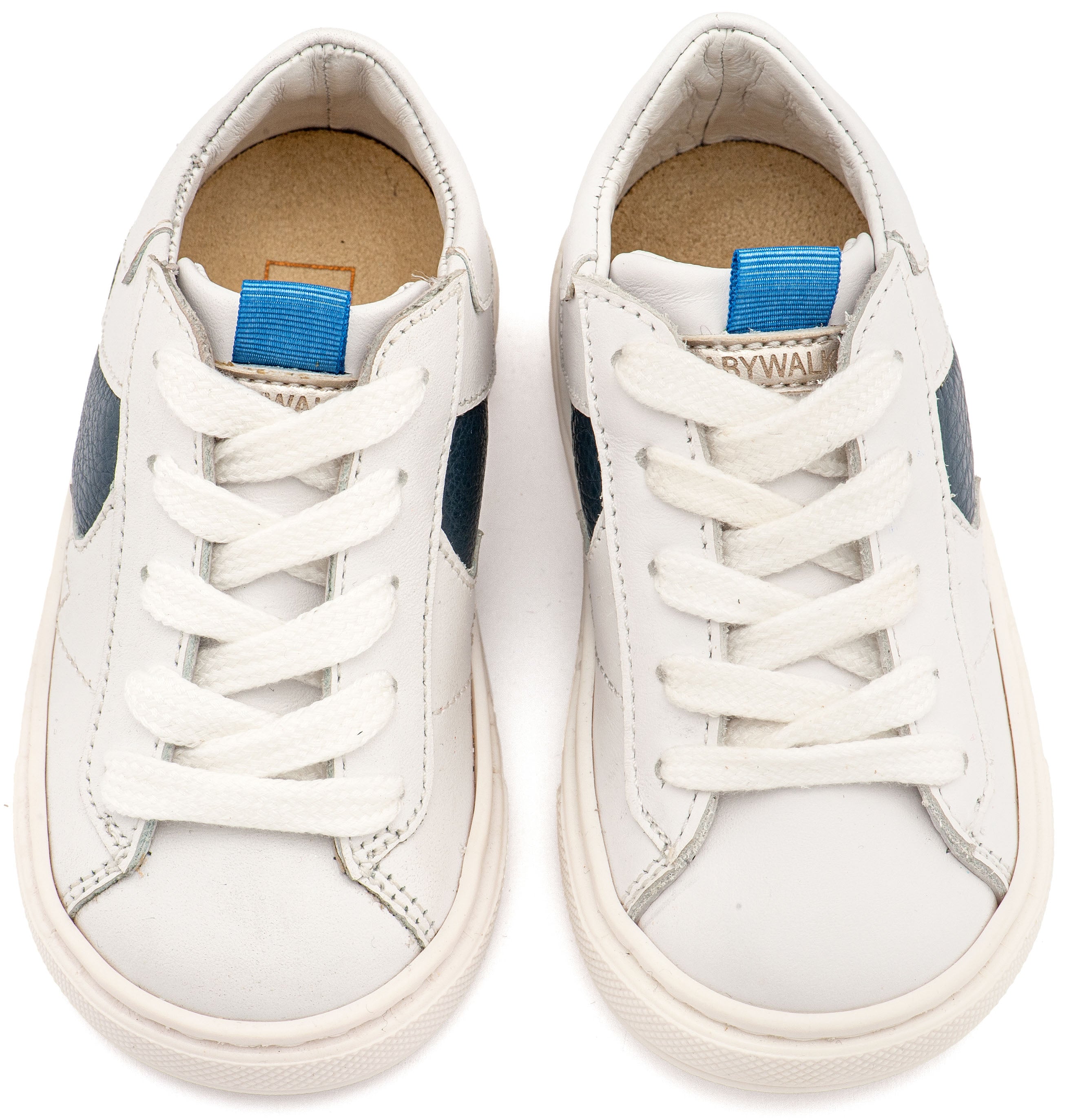 Δερμάτινο Δίχρωμο Sneaker Δετό σε Λευκό Μπλε Χρώμα