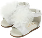 Δερμάτινο Πέδιλο Διακοσμημένο με chiffon Πον Πον από Δέρμα Νάπα σε Λευκό Χρώμα