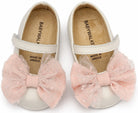 Δερμάτινο Γοβακι Μονή Μπαρέτα με Χειροποίητο Υφασμάτινο Φιόγκο από Δέρμα Πέρλα σε Εκρού Ροζ Χρώμα