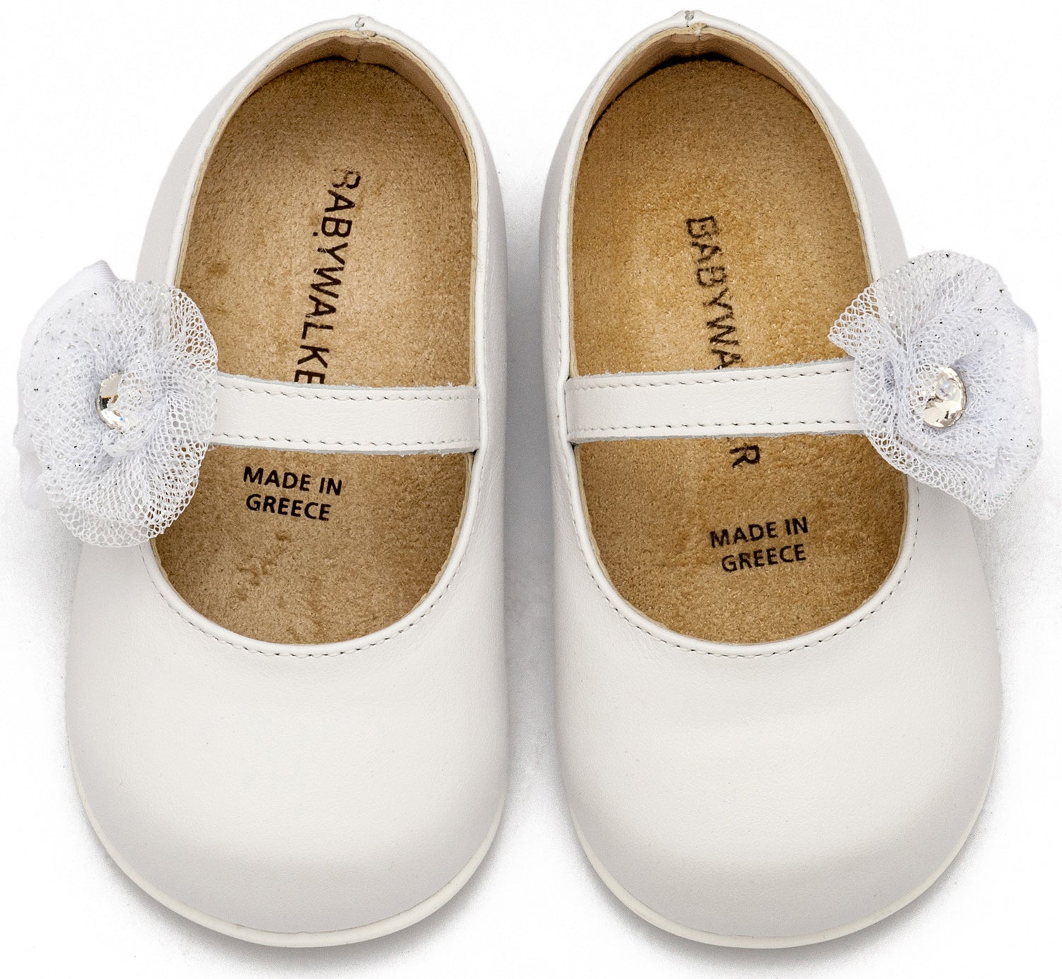 Δερμάτινο Γοβακι Μονή Μπαρέτα με Χειροποίητο Διακοσμητικό με Λουλούδια στο πλάι από Δέρμα Νάπα σε Λευκό Χρώμα
