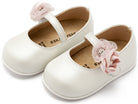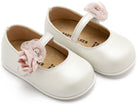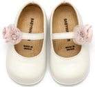 Δερμάτινο Γοβακι Μονή Μπαρέτα με Χειροποίητο Διακοσμητικό με Λουλούδια στο πλάι από Δέρμα Πέρλα σε Εκρού Ροζ Χρώμα
