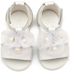 Πέδιλο Διακοσμημένο με Λουλούδια και Πέρλες PRI2641 Λευκό