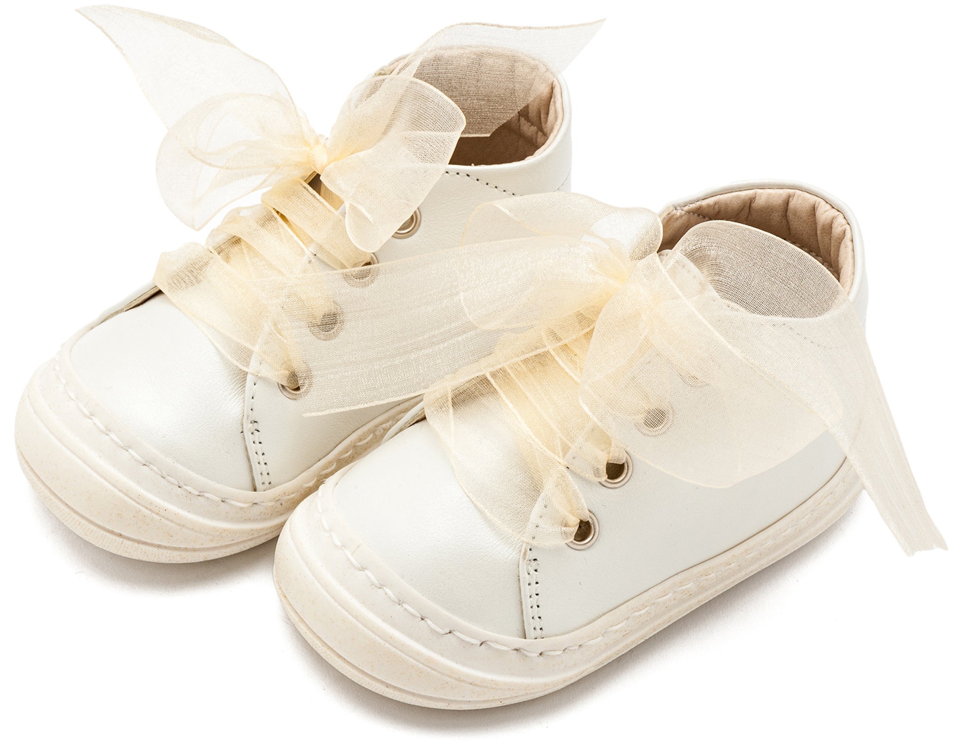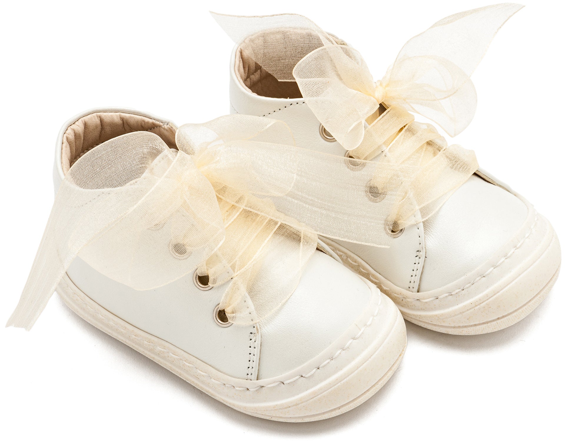 Δερμάτινο Σνίκερ με Δέσιμο Κορδέλα Οργάντζα από Δέρμα Πέρλα σε Εκρού Χρώμα