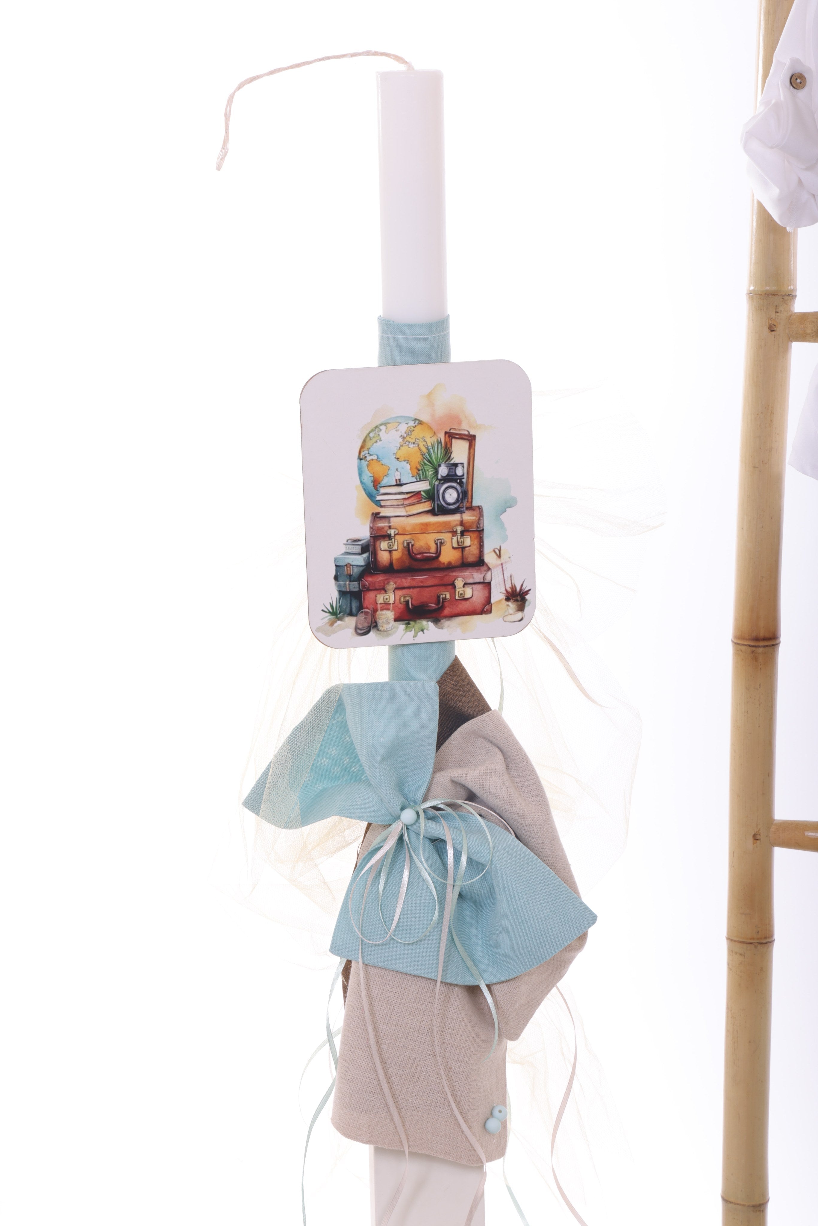 Χειροποίητη λαμπάδα βάπτισης με ξεχωριστό σχεδιασμό, φτιαγμένη με υψηλής ποιότητας υλικά.