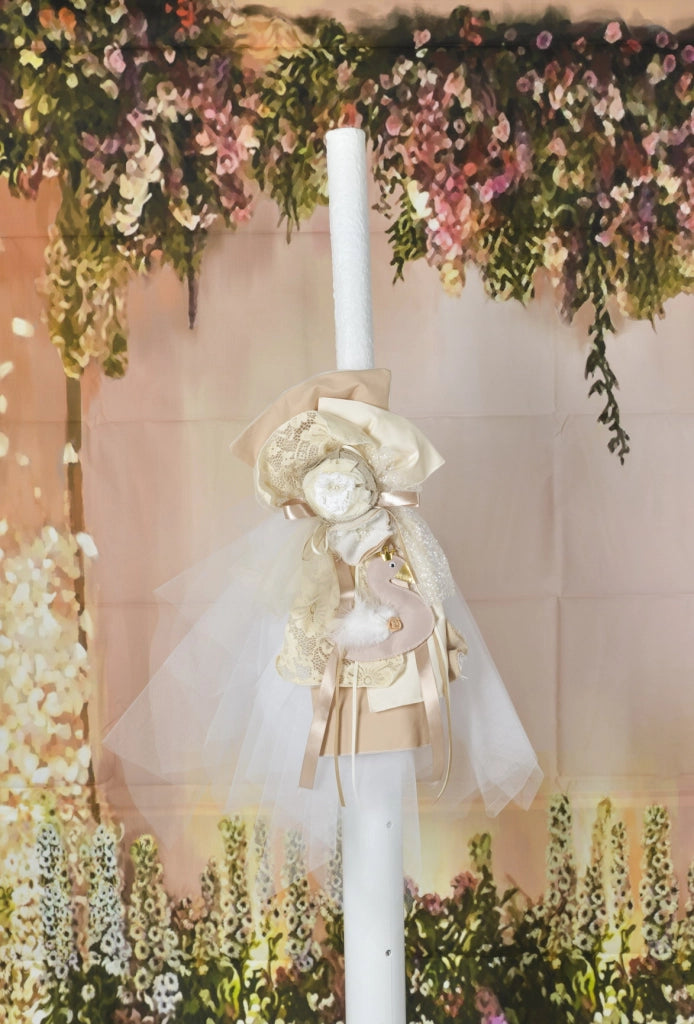 Χειροποίητη Λαμπάδα Βάπτισης με ξεχωριστό σχεδιασμό, φτιαγμένη με υψηλής ποιότητας υλικά.