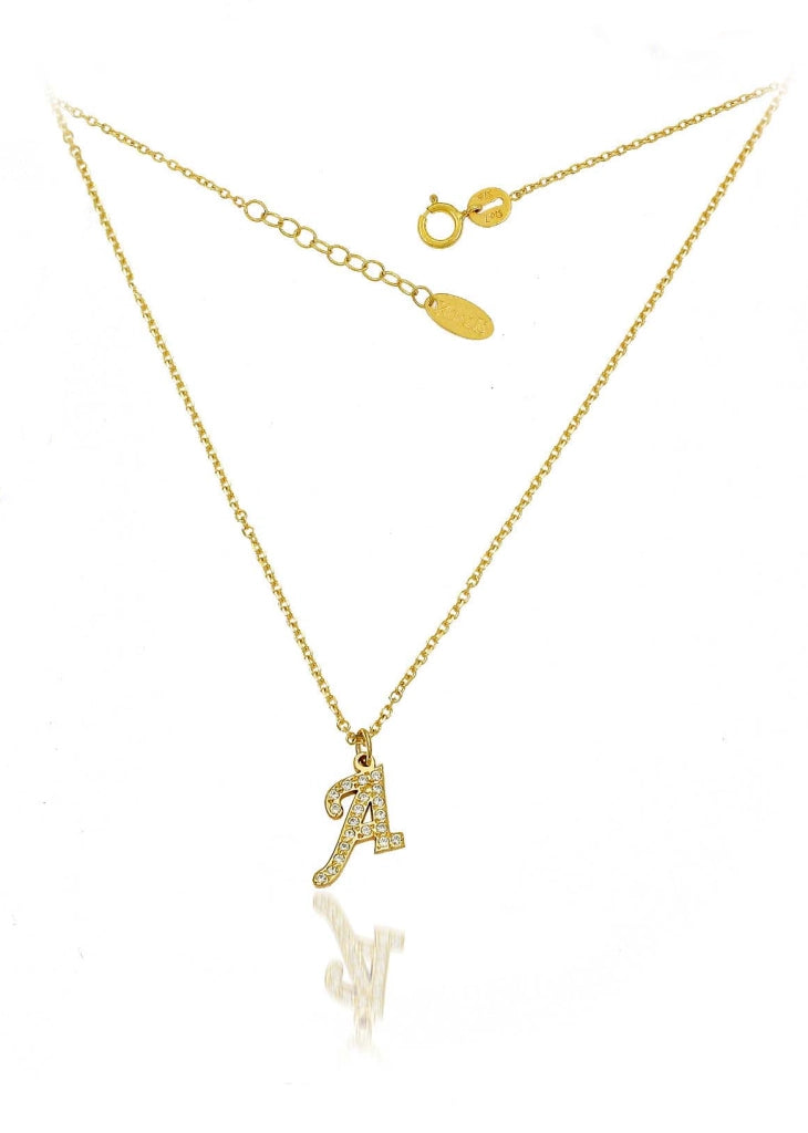Γυναικείο Κολιέ χρυσό με Μονόγραμμα και Λευκά Ζιργκόν. Διαθέσιμο σε Κ9 και Κ14.