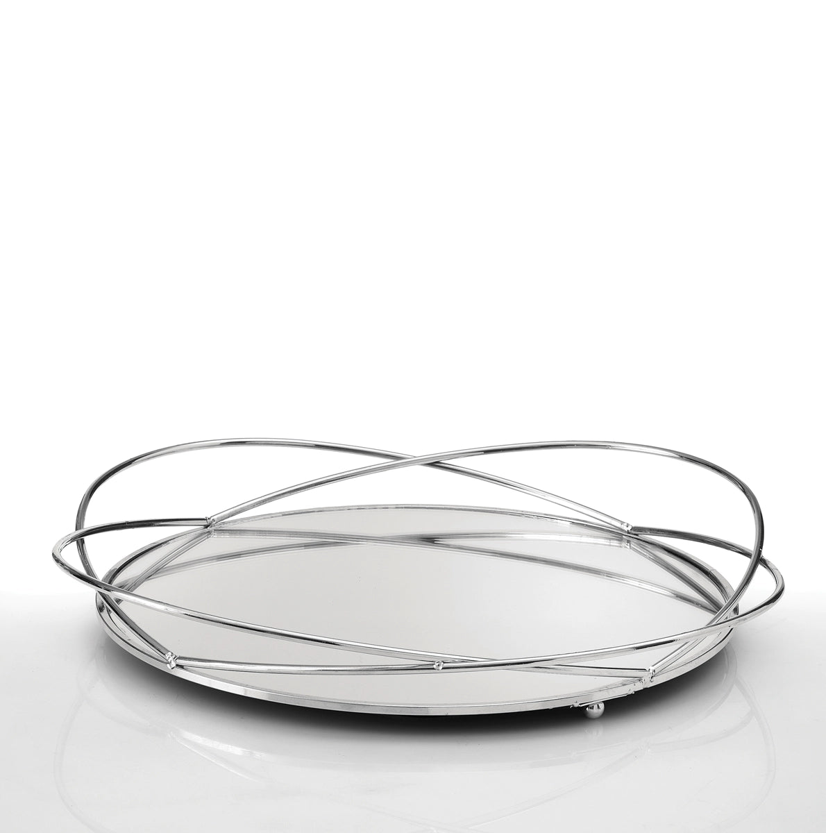 Στρογγυλός ασημένιος δίσκος με καθρέφτη DM-0750