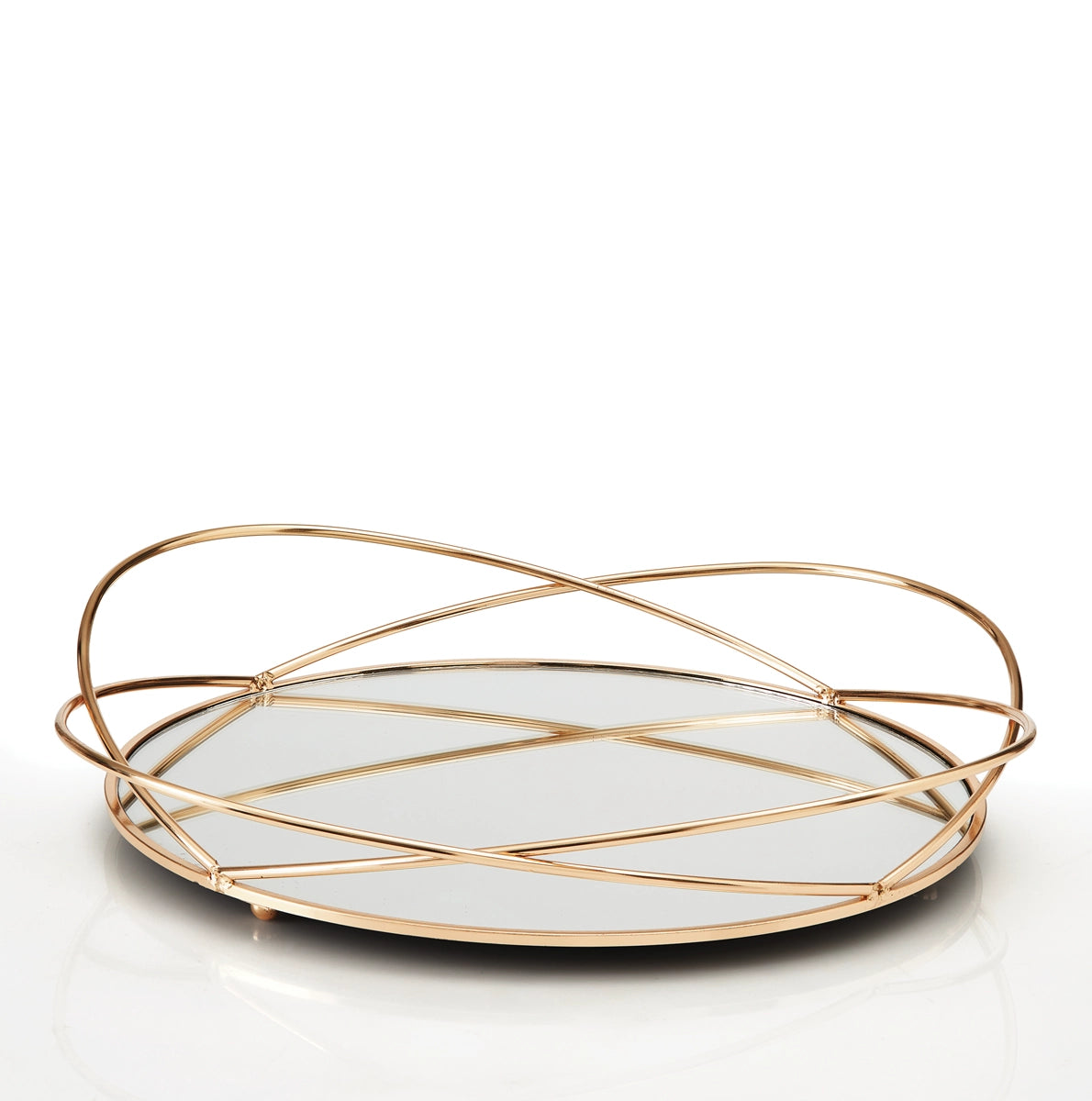 Στρογγυλός μεταλλικός χρυσός δίσκος με καθρέφτη, ιδανικός για γαμήλια δεξίωση και κομψή διακόσμηση.