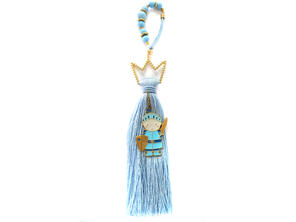 Διακοσμητικό κρεμαστό γούρι σιέλ με ιππότη και χάντρες