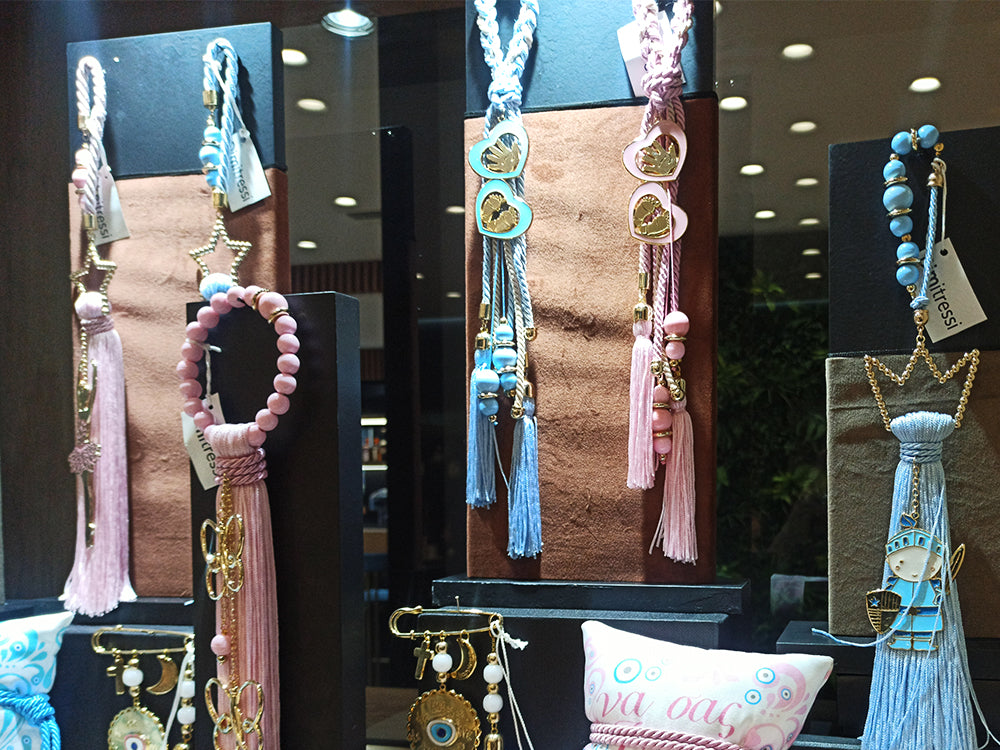 Διακοσμητικό κρεμαστό γούρι σιέλ με καρδιές