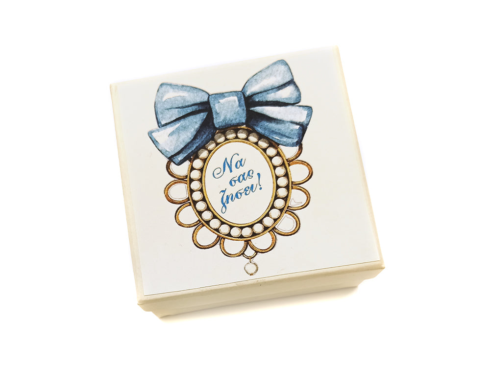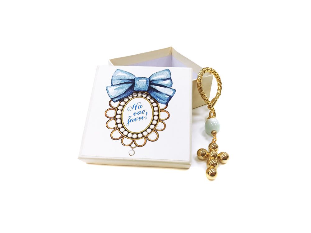 Κρεμαστό γούρι σταυρός σε εκτυπωμένο κουτί μπλε