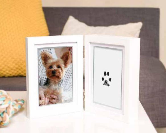 Αγαπάμε πολύ τους μικρούς τριχωτούς μας φίλους και αξίζουν τα καλύτερα! Είτε αποκτήσατε τώρα το κατοικίδιό σας είτε σας συντροφεύει για χρόνια, αποτυπώστε το γούνινο αποτύπωμά του με την κορνίζα για αποτύπωμα ζώου Pearhead!!! Δημιουργήστε μια πολύτιμη ανάμνηση που θα σας συντροφεύει για χρόνια!!!! Διαλέξτε μια αξιολάτρευτη φωτογραφία του να βάλετε στα αριστερά και το πατουσάκι του στα δεξιά με μια διαδικασία που είναι πολυ απλή και εύκολη οπότε μην ανησυχείτε ότι θα ταλαιπωρηθεί καθόλου το ζωάκι σας! Τέλειο; Είναι επίσης 100% ασφαλές για κατοικίδια ζώα καθώς το μαξιλάρι μελανιού Clean-Touch εξασφαλίζει ότι τα πόδια του τριχωτού σας φίλου δεν θα αγγίξουν ποτέ το μελάνι! Για να δημιουργήσετε μια εκτύπωση, βεβαιωθείτε ότι το μελάνι στρέφεται προς τα κάτω στην ενιαία λευκή κάρτα και πατήστε το πόδι του κατοικίδιου ζώου σας στο μαξιλάρι μελανιού. Αφήστε το να στεγνώσει για 1-2 ημέρες και στη συνέχεια, προσθέστε την αγαπημένη σας φωτογραφία και έτοιμο το πιο ξεχωριστό ενθύμιο για να διακοσμήσει το σαλόνι σας, το γραφείο σας ή όποια άλλη γωνιά του σπιτιου σας θέλετε.Α Αν κάνετε λάθος, κανένα πρόβλημα! Μπορείτε να το ξαναφτιάχνετε και δεύτερη φορά ώστε να έχετε το τέλειο αποτέλεσμα. Είναι ιδανικό για σκύλους ή γάτες!!! Το μαξιλάρι φιλοξενεί πόδια έως και 6 x 8 εκ Διαστάσεις προϊόντος: 29 x 16 εκ
