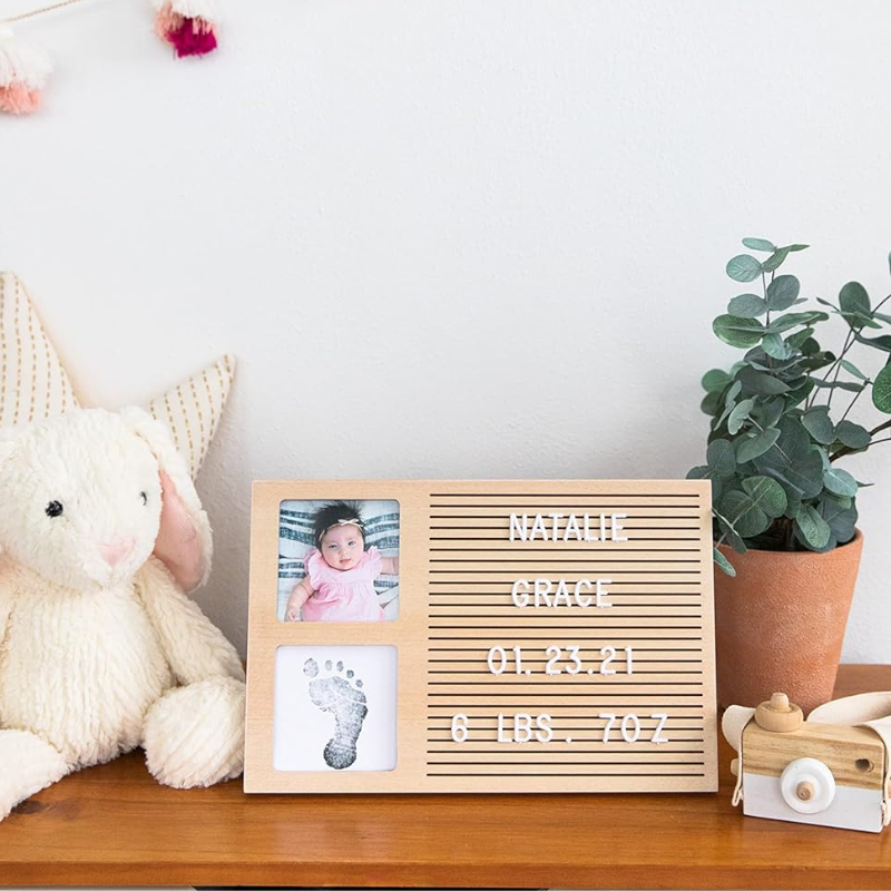 Letterboard με θέσεις για το αποτύπωμα του μωρού σας και τη φωτογραφία του! Μοντέρνο διακοσμητικό 3 σε 1 για το παιδκό δωμάτιο και όχι μόνο. Ένας ιδιαίτερος τρόπος να γιορτάσετε κάθε ορόσημο του παιδιού σας και μία εξαιρετική ιδέα photo prop. Με τα photo props της Pearhead, δημιουργείτε μοναδικές αναμνήσεις και μένουν για μια ζωή. Ιδανική επιλογή για: Δώρο σε baby shower ή βάφτιση Δώρο σε μία μέλλουσα μαμά Τεχνικά Χαρακτηριστικά: - Διαστάσεις: 12,5 εκ * 8,5 εκ - Υλικό: Ξύλο