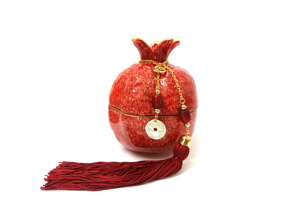 Διακοσμητικό γούρι πορσελάνινο ρόδι κόκκινο φοντανιέρα