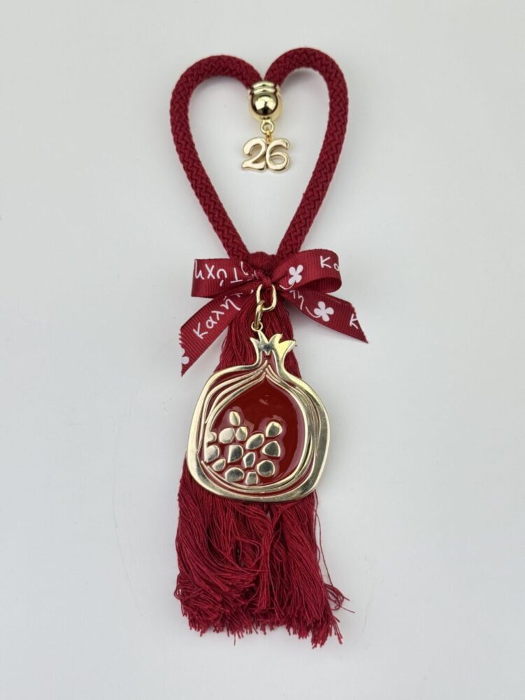 Διακοσμητικό κρεμαστό γούρι καρδιά με ρόδι