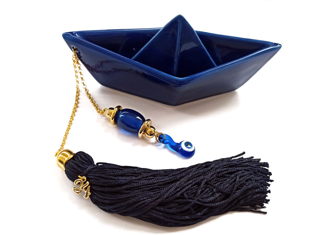 Διακοσμητικό πορσελάνινο καράβι μπλε navy