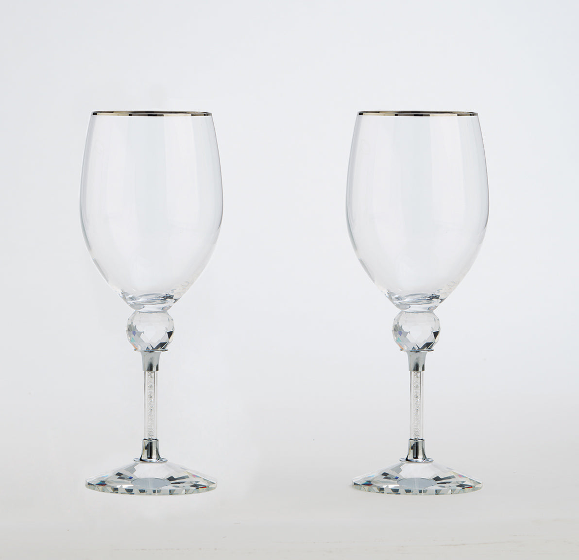 Για όσους λατρεύουν τη minimal κομψότητα, αυτό το κρυστάλλινο ποτήρι με ασημί διακόσμηση στο στόμιο είναι η τέλεια επιλογή. Η διακριτική του λάμψη προσθέτει μια αίσθηση φρεσκάδας και στυλ, ενώ ταιριάζει αρμονικά με κάθε γαμήλιο σκηνικό.