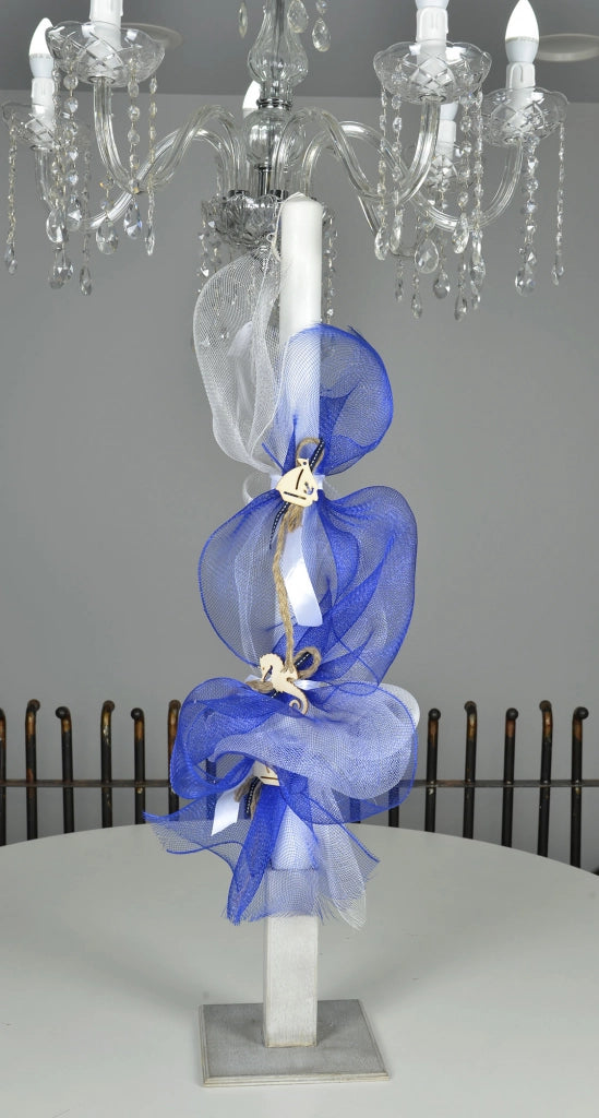 Χειροποίητη Λαμπάδα Βάπτισης με ξεχωριστό σχεδιασμό, φτιαγμένη με υψηλής ποιότητας υλικά.