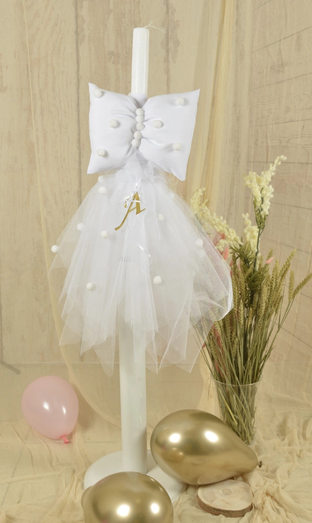 Χειροποίητη Λαμπάδα Βάπτισης Φιόγκος Πομ Πομ
