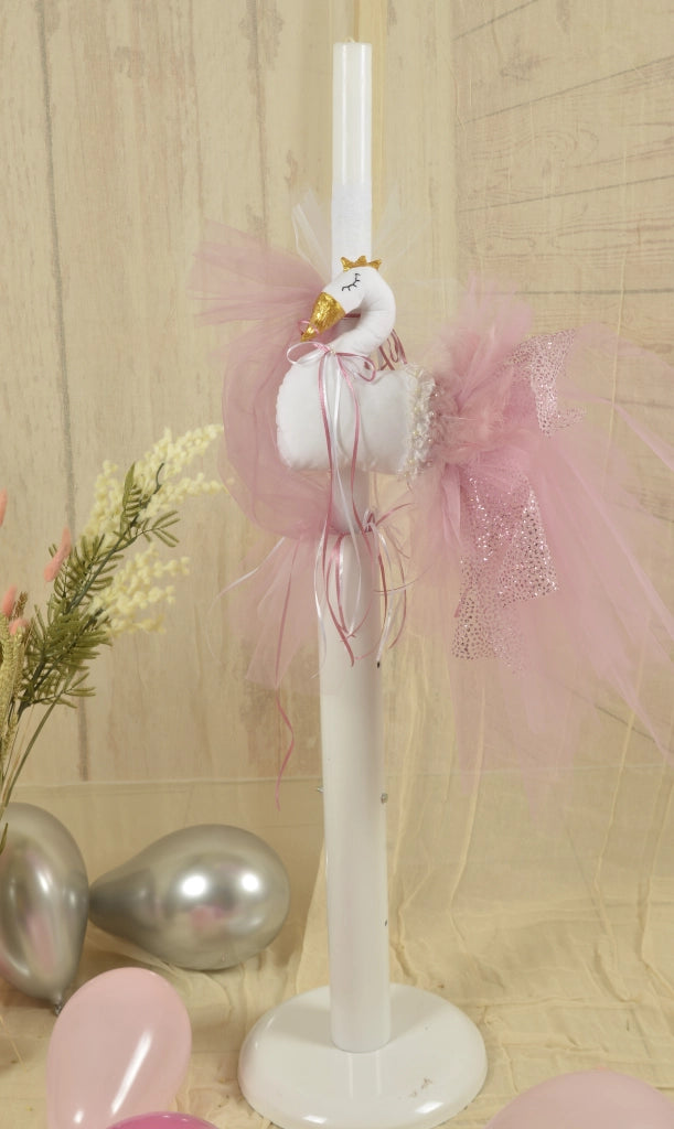 Χειροποίητη Λαμπάδα Βάπτισης Κύκνος