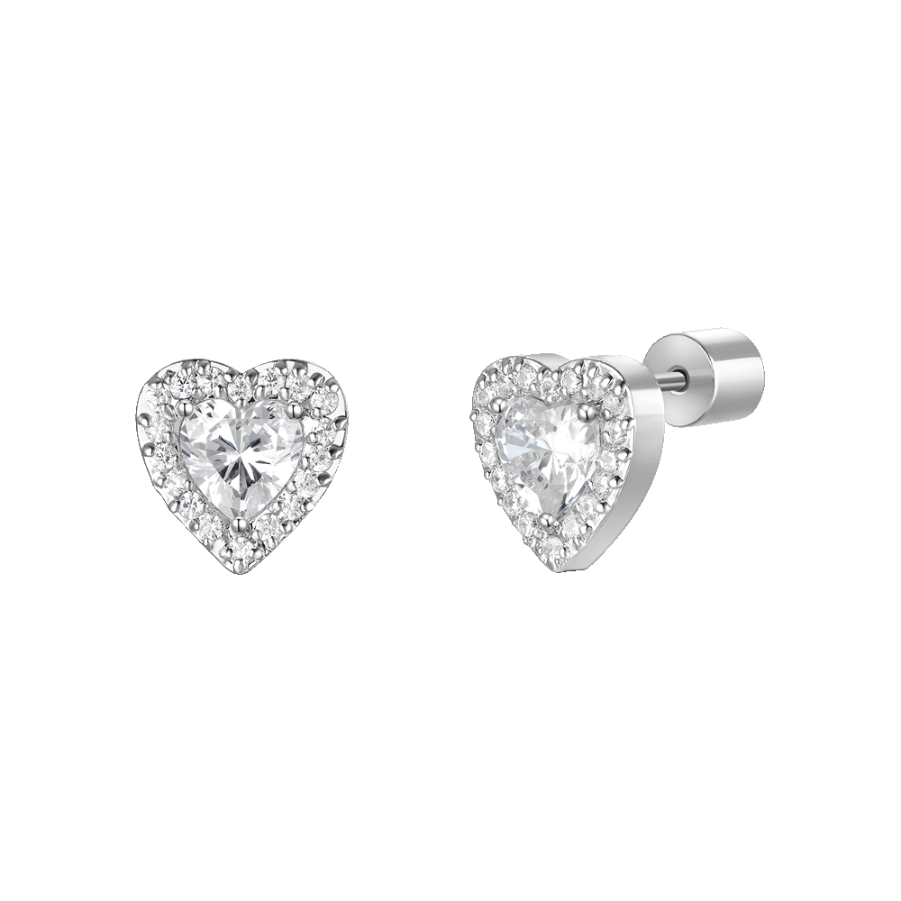 Γυναικείο Σκουλαρίκια από ατσάλι με καρδιές και λευκά ζιργκόν Luca Barra