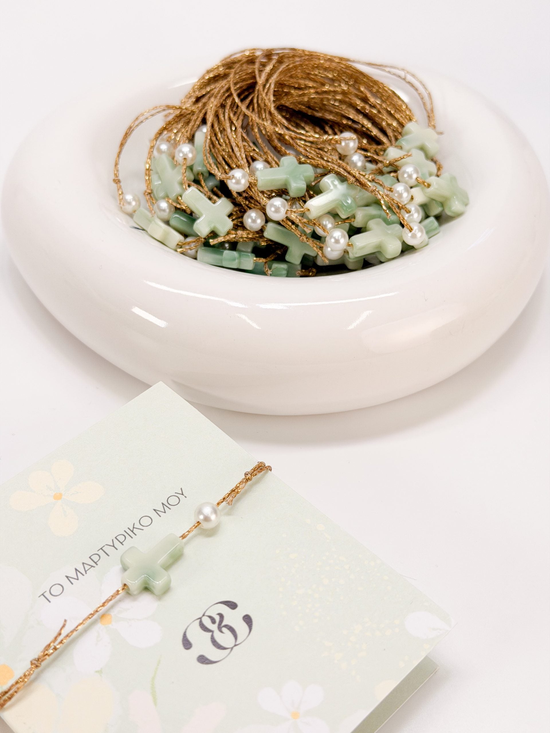 Ένα εκλεπτυσμένο χειροποίητο μαρτυρικό βραχιολάκι σε γήινες αποχρώσεις και πράσινες λεπτομέρειες.