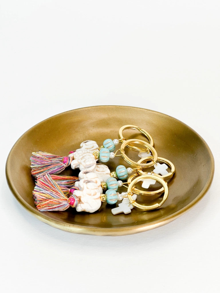 Μαρτυρικό μπρελόκ με πολύχρωμη φούντα,γαλάζια χάντρα,μοτίφ ελέφαντας και σταυρό.Οι φωτογραφίες έχουν υποστεί επεξεργασία,ίσως να διαφέρουν λίγο τα χρώματα στην πραγματικότητα.