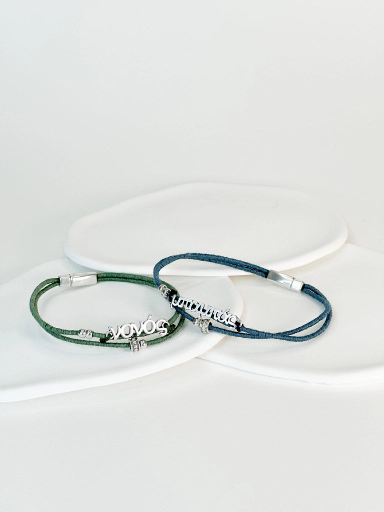 Βραχιολάκι για τον μπαμπά και τον νονό σε λαδί και μπλέ απόχρωση.Οι φωτογραφίες έχουν υποστεί επεξεργασία,ίσως να διαφέρουν λίγο τα χρώματα στην πραγματικότητα.