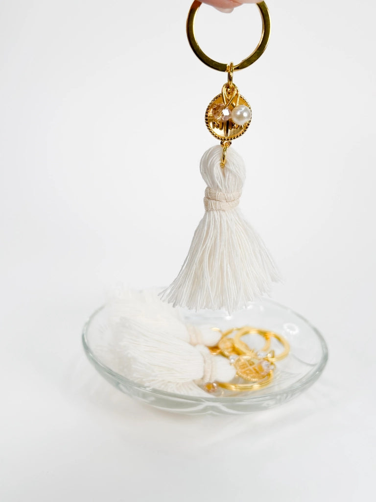 Χειροποίητο Μαρτυρικό Μπρελόκ με χρυσό Κωνσταντινάτο, λευκό φουντάκι και διακοσμητικές χάντρες.