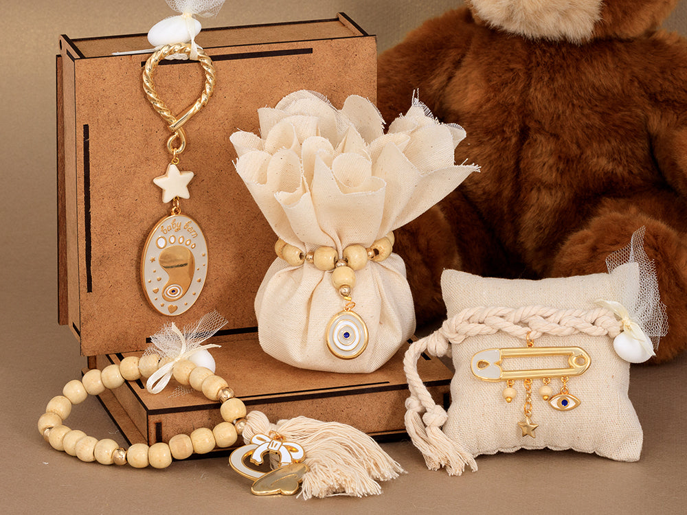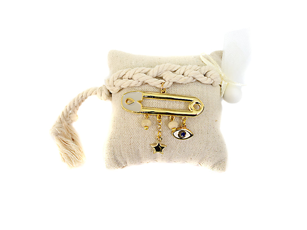 Μπομπονιέρα μαξιλαράκι εκρού με παραμάνα