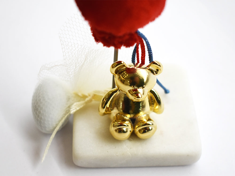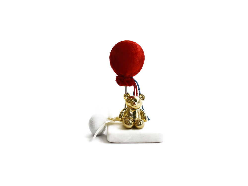 Μπομπονιέρα βότσαλο με αρκουδάκι και μπαλόνι.