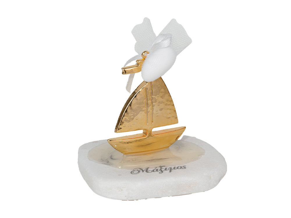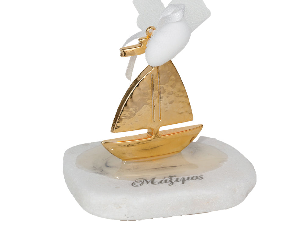 Μπομπονιέρα βότσαλο με καράβι και εκτύπωση.