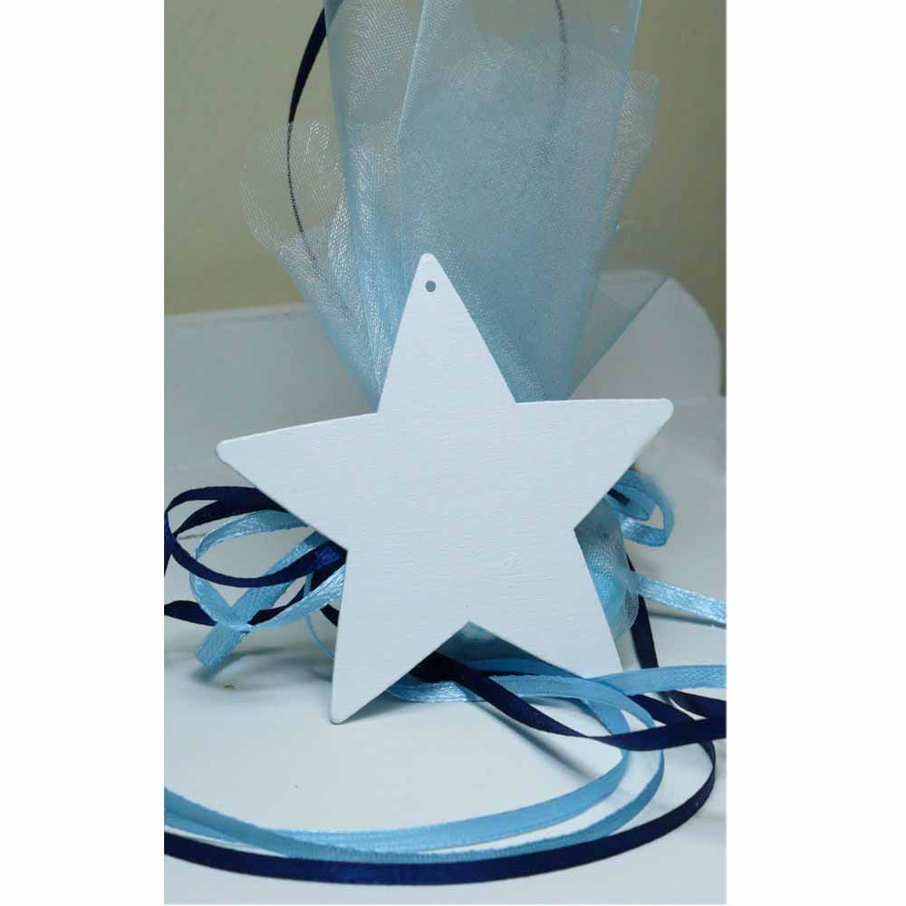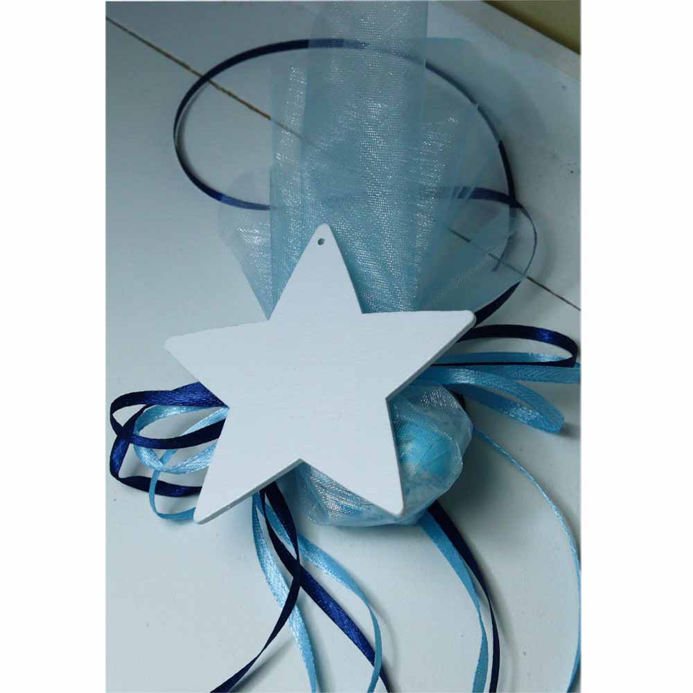 Χειροποίητη μπομπονιέρα βάπτισης με σχέδιο ξύλινο αστέρι.