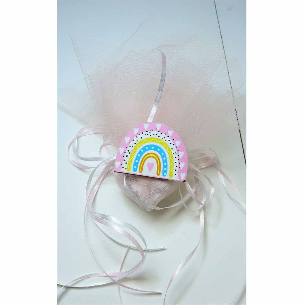 Χειροποίητη μπομπονιέρα βάπτισης με σχέδιο ουράνιο τόξο.