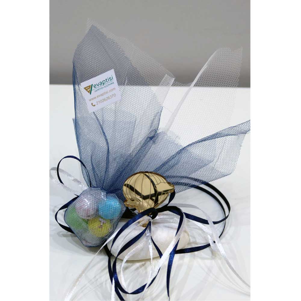 Χειροποίητη μπομπονιέρα βάπτισης με σχέδιο βραχάκι.