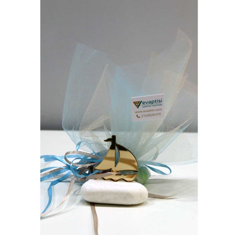 Χειροποίητη μπομπονιέρα βάπτισης με σχέδιο βραχάκι.