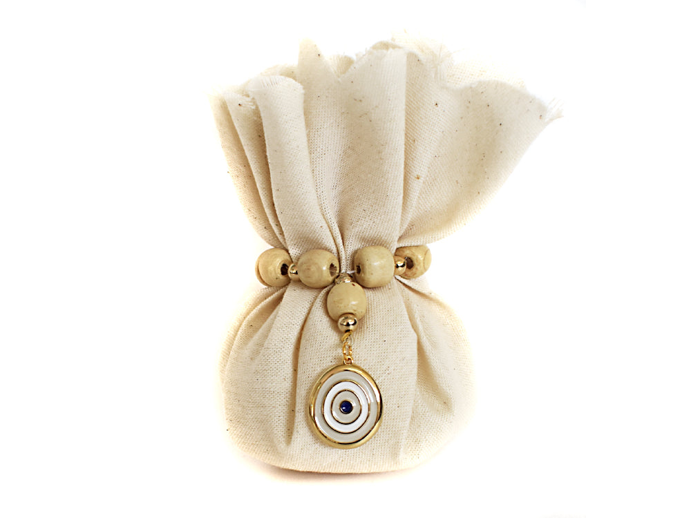 Μπομπονιέρα πουγκί εκρού με μάτι.