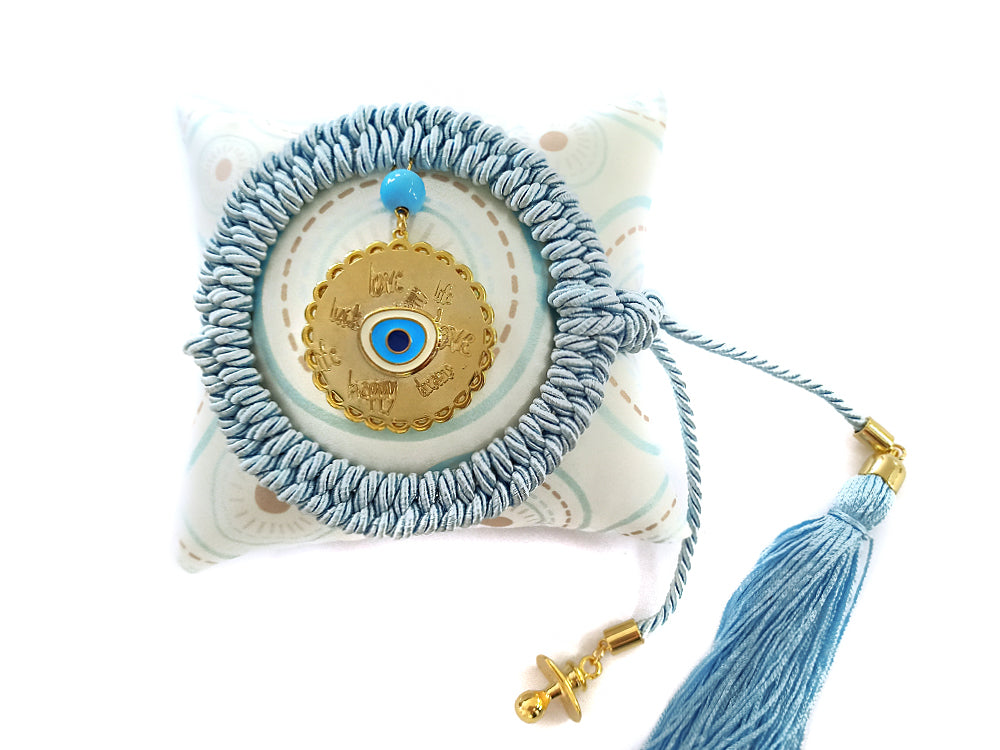 Διακοσμητικό κρεμαστό γούρι σιέλ με μάτι και πιπίλα