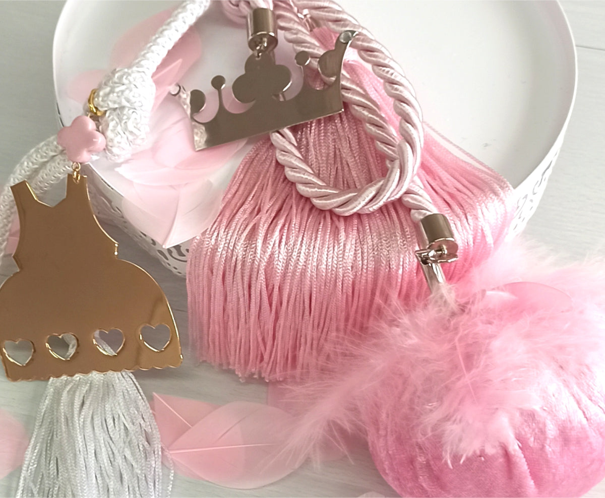Διακοσμητικό κρεμαστό ροζ με κορώνα και κολοκύθα