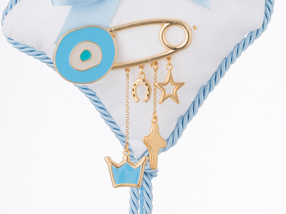 Μαξιλάρι κρεμαστό σιέλ-λευκό με παραμάνα μάτι