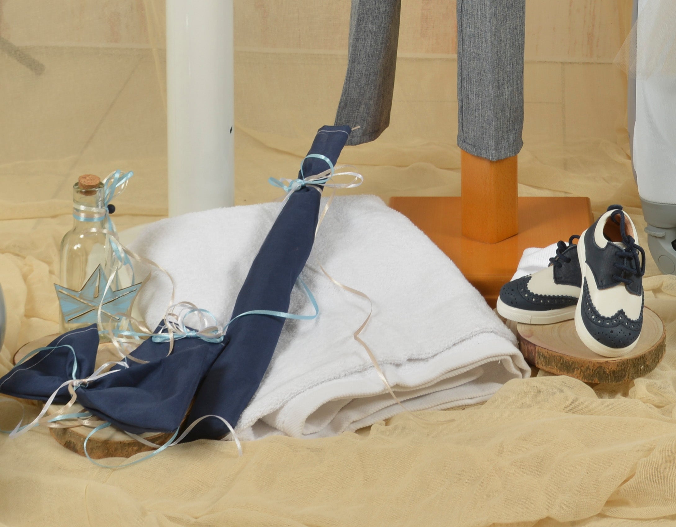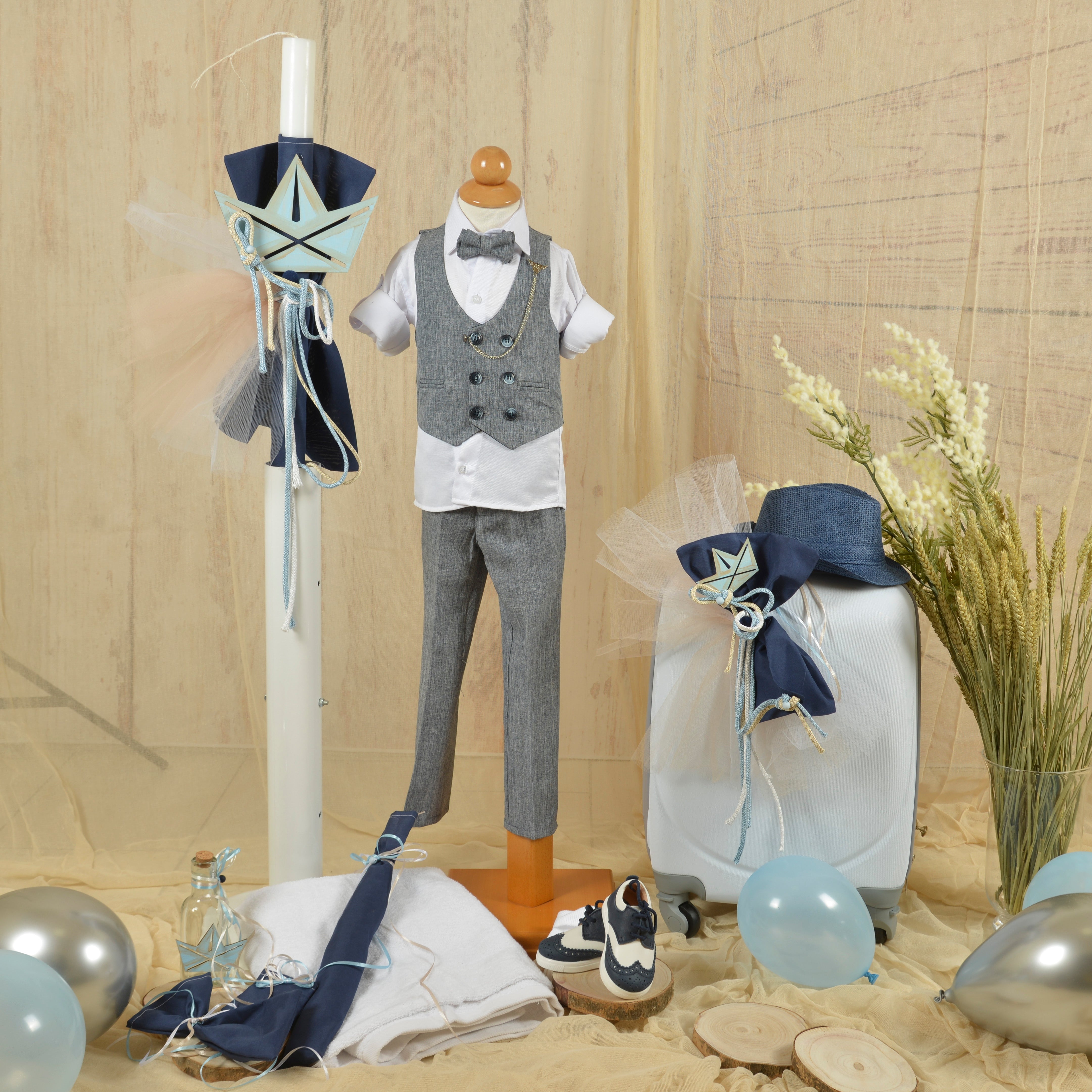 Ένα ολοκληρωμένο πακέτο βάπτισης για τον μικρό σας με θέμα καραβάκι σε ένα συνδυασμό αποχρώσεων λευκό, γκρι, μπλε και γαλάζιο.