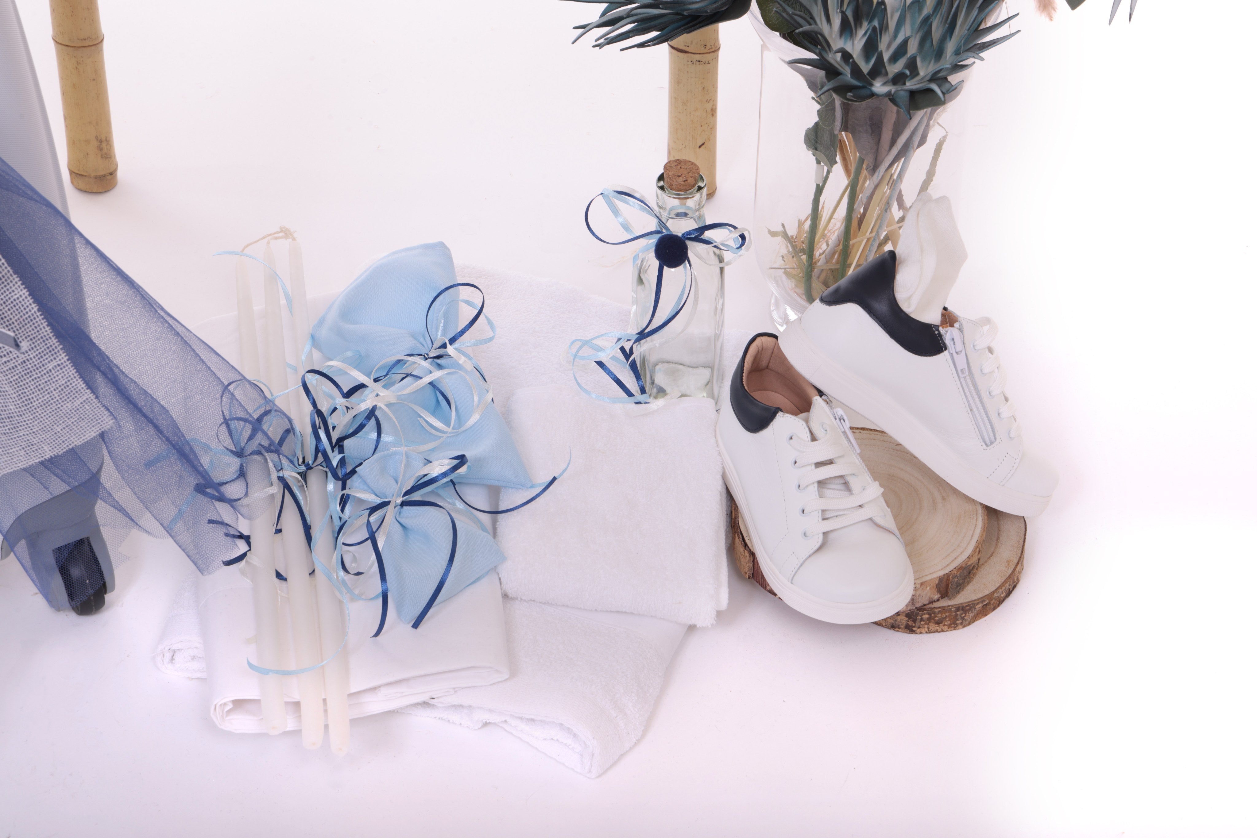 Ένα ναυτικό, ολοκληρωμένο πακέτο βάπτισης για τον μικρό σας πρίγκιπα, σε γήινιες και γαλάζιες αποχρώσεις.
