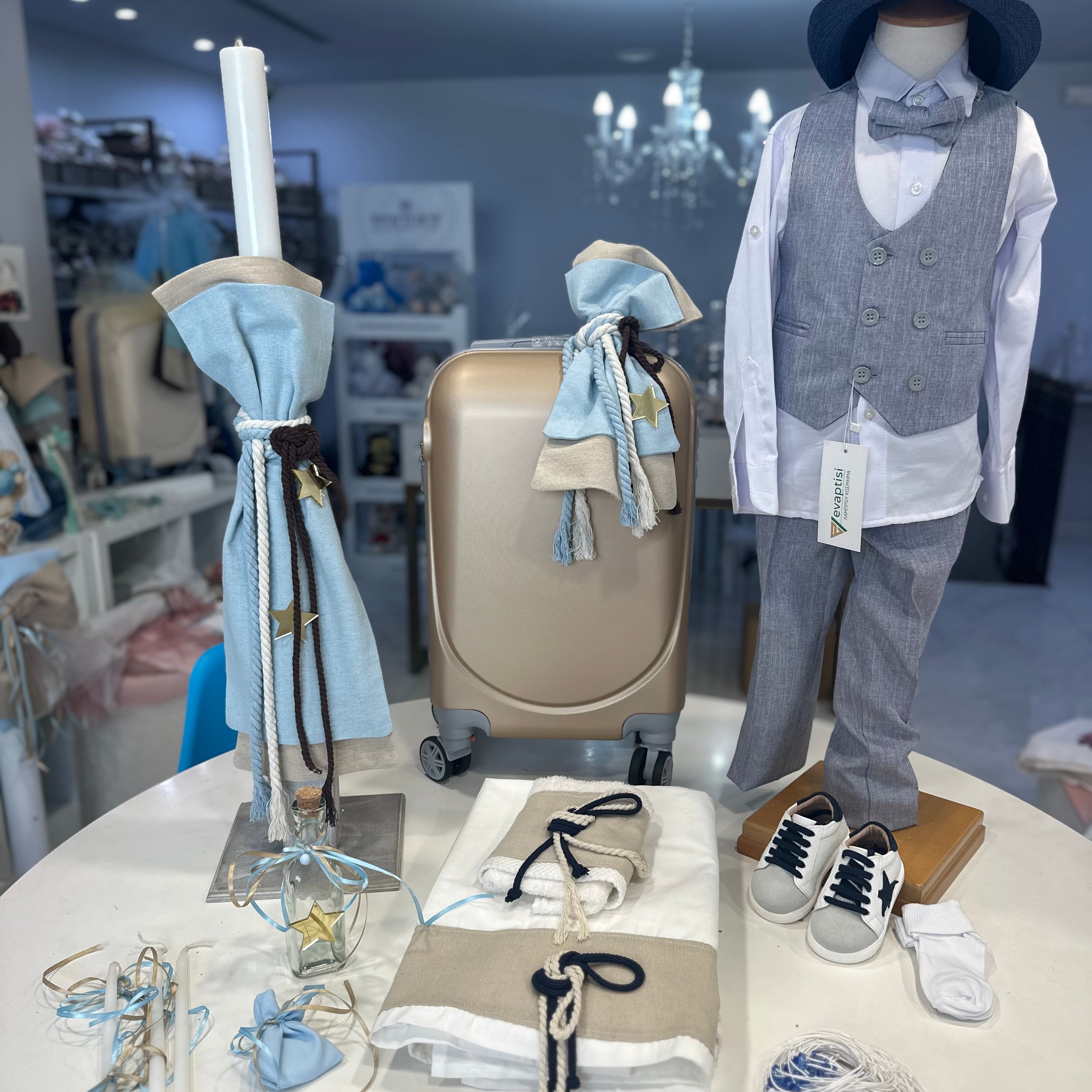 Ψάχνετε για κάτι ξεχωριστό; Στο evaptisi.com έχουμε δημιουργήσει για εσας τα πιο μοναδικά, ολοκληρωμένα βαπτιστικά πακέτα για αγόρια, για την πιο υπέροχη βάπτιση του μικρού σας! Και, φυσικά, στις καλύτερες τιμές της αγοράς. Διαλέξτε το αγαπημένο σας θέμα μέσα από μία μεγάλη ποικιλία σχεδίων και αφήστε σε εμάς όλα τα υπόλοιπα.