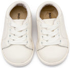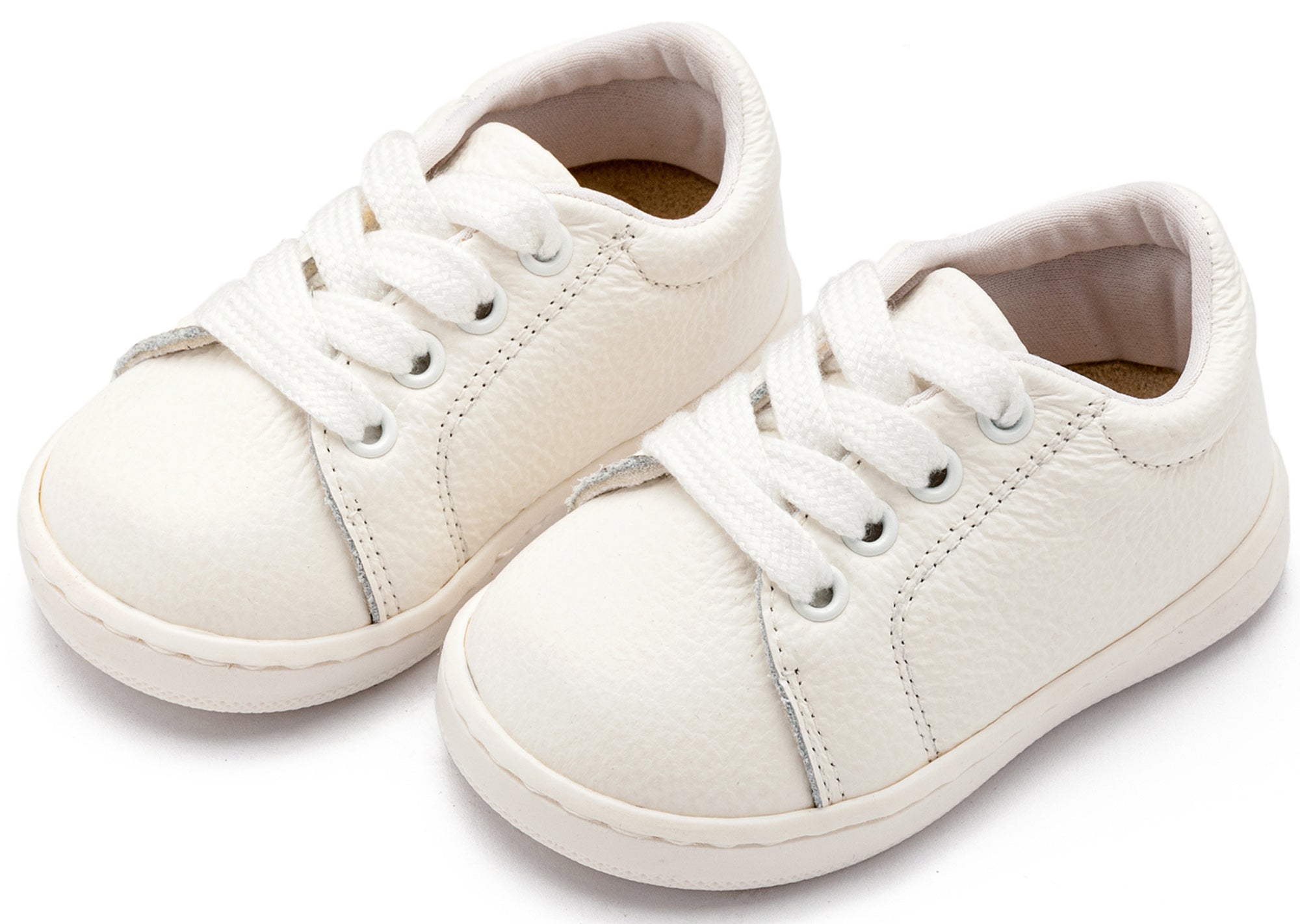 Μονόχρωμο Δερμάτινο Δετό Sneakers σε Λευκό Χρώμα