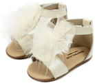 Δερμάτινο Πέδιλο Διακοσμημένο με Chiffon Πον Πον από Δέρμα Πέρλα σε Εκρού Χρώμα