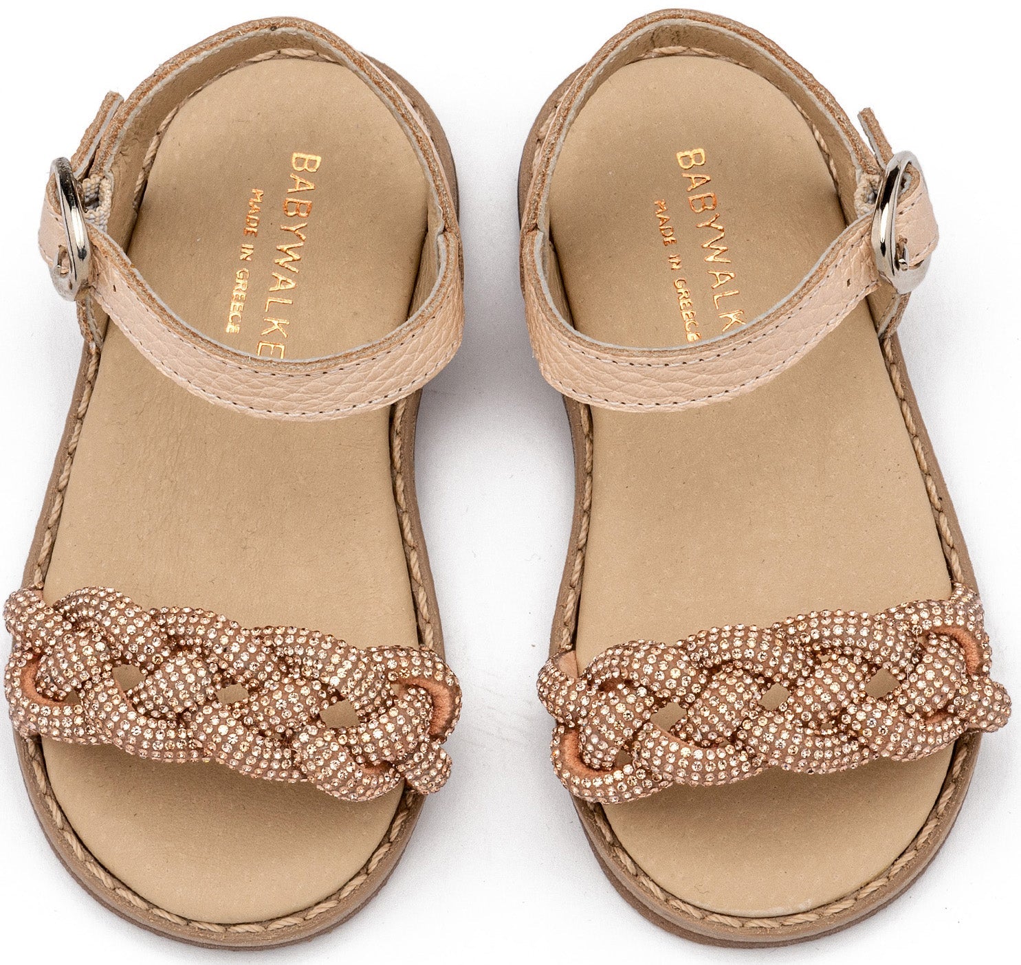 Δερμάτινο Σανδάλι με Διακοσμητική Πλεξούδα Μπροστά σε Nude Χρώμα