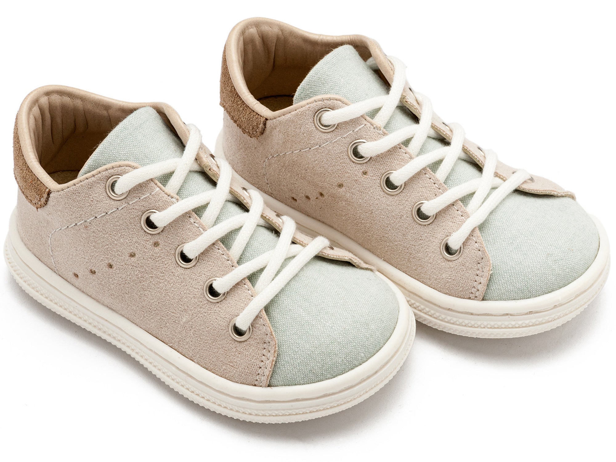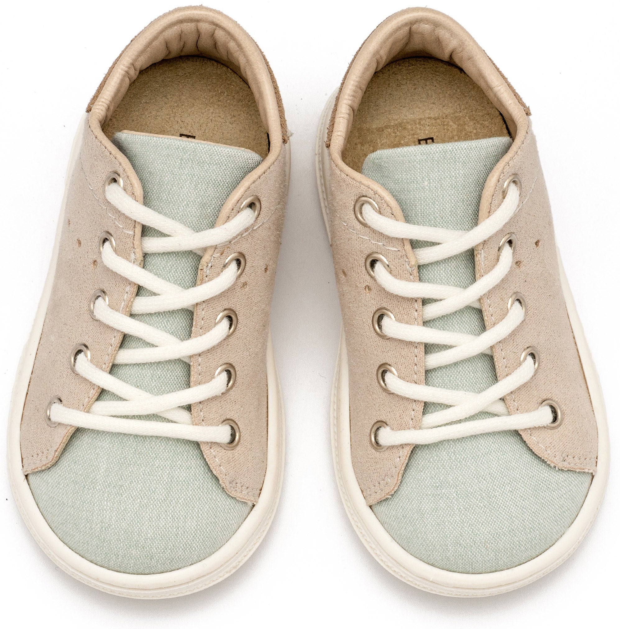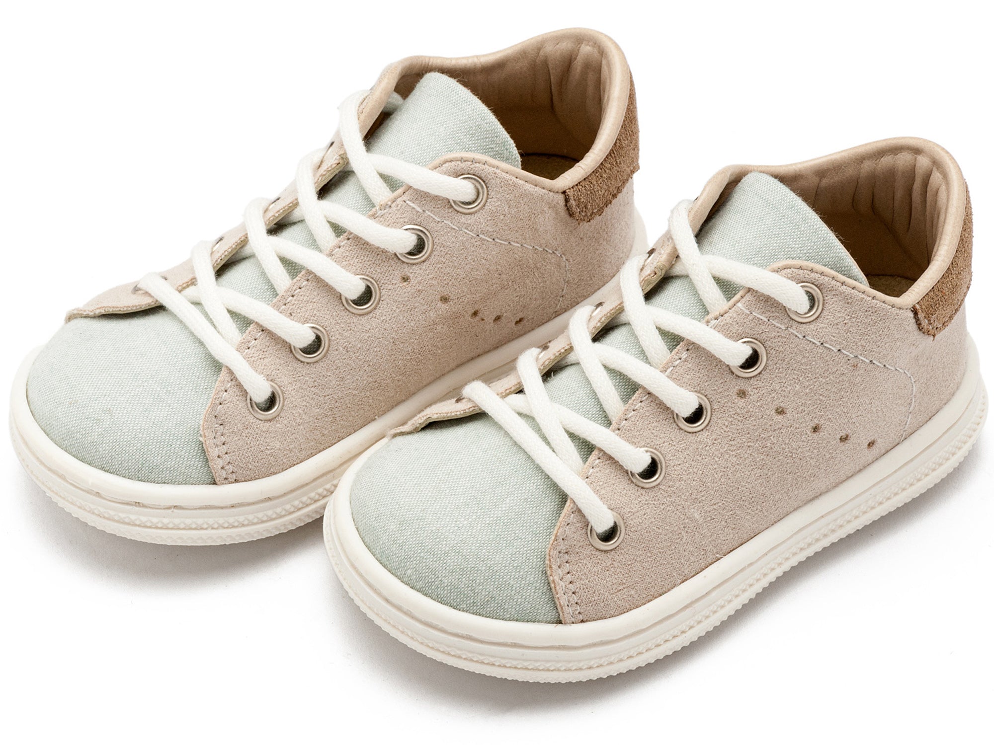 Δίχρωμα Δετά Σνίκερ από Ύφασμα και Δέρμα σε Μπεζ Μέντα Χρώμα
