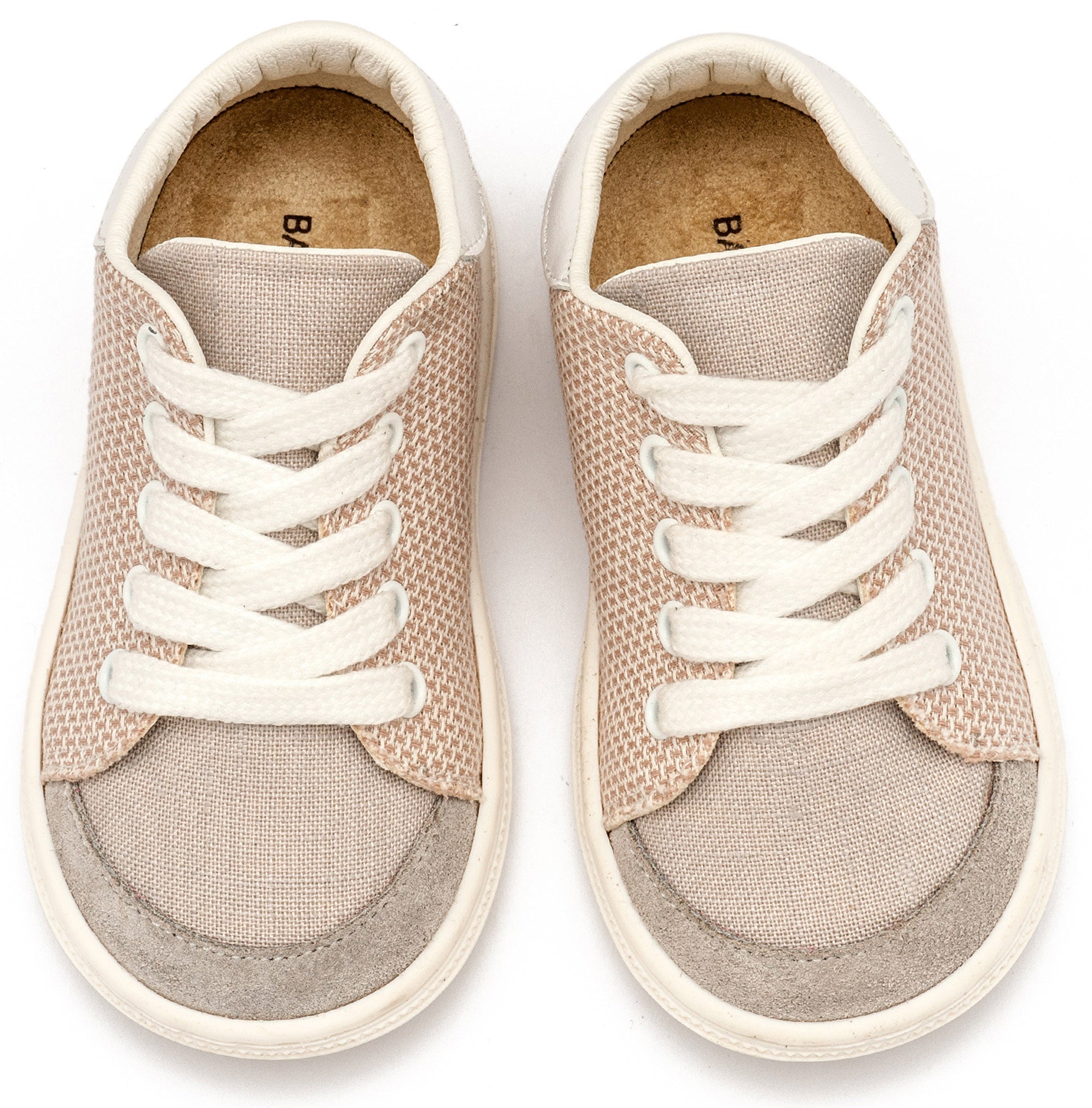 Δετά Δίχρωμα Σνίκερς από Ύφασμα και Συνθετικό Δέρμα σε Μπεζ Γκρι Χρώμα